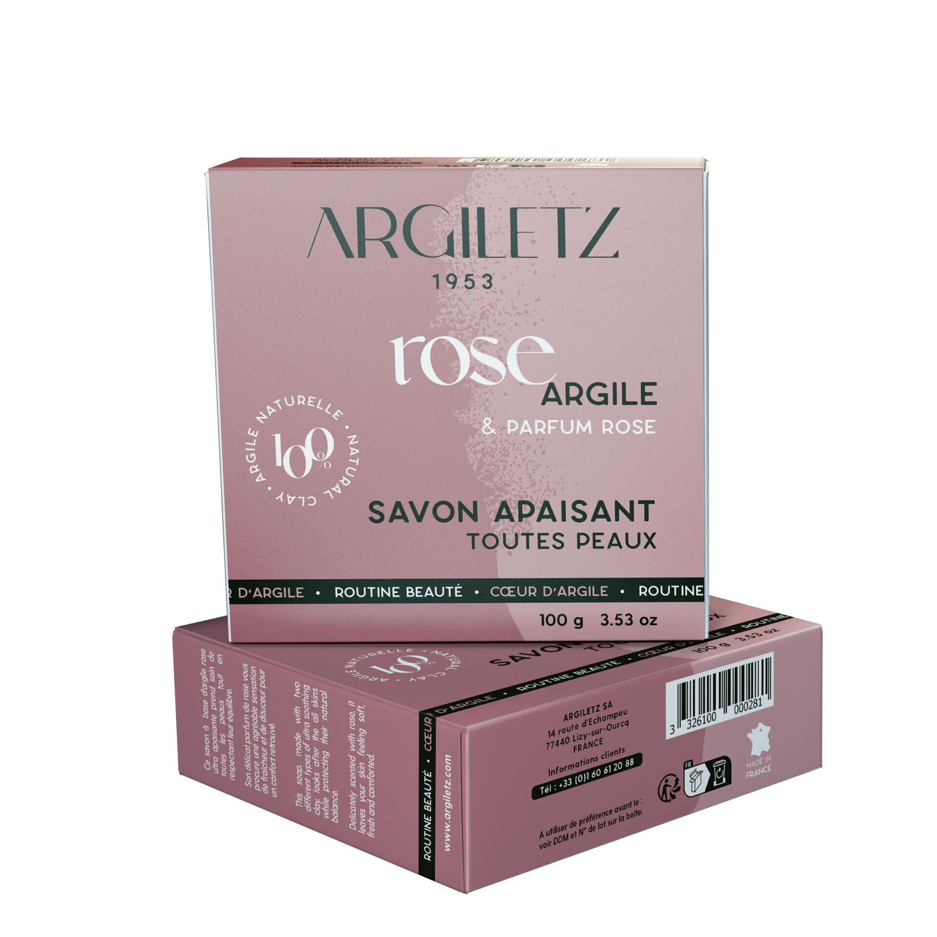 This soap, made with two different types of ultra soft clay, takes care of all skin types while protecting their natural balance. Delicately scented with rose, it leaves your skin feeling soft, fresh and comforted.