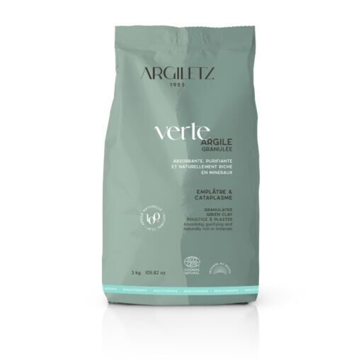 Granulated clay is a raw clay with 8mm granule size for faster preparation. As a poultice or plaster, its minerals contribute to your body’s well-being, and these granulated green clay pieces are quick to prepare and comfortable.