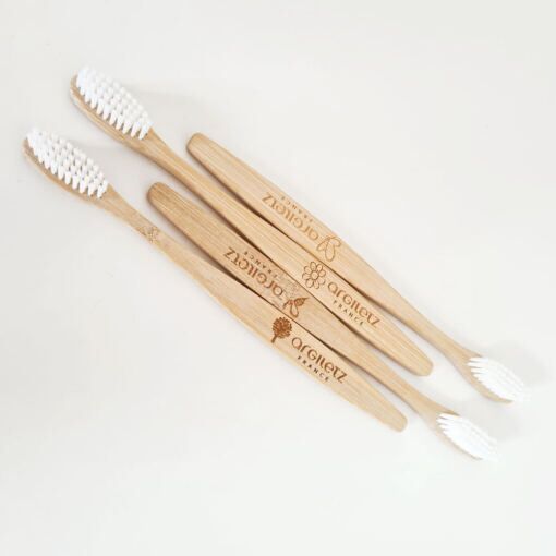 La brosse à dents en bambou : à associer à nos dentifrices BIO. À chaque brosse à dents son picto : Papillon, abeille, arbre, fleur. Chaque membre de la famille a sa brosse à dents.