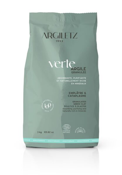 L’argile granulée est une argile brute aux grains d’environ 8 mm. En cataplasme ou en emplâtre, l’argile verte granulée se prépare rapidement pour vous offrir un véritable confort et soulager efficacement votre corps.