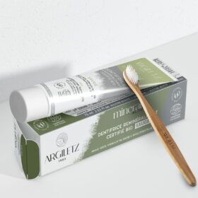 La brosse à dents ARGILETZ possède une boite en Kraft et un manche en bambou léger, tous les deux 100% biodégradables.