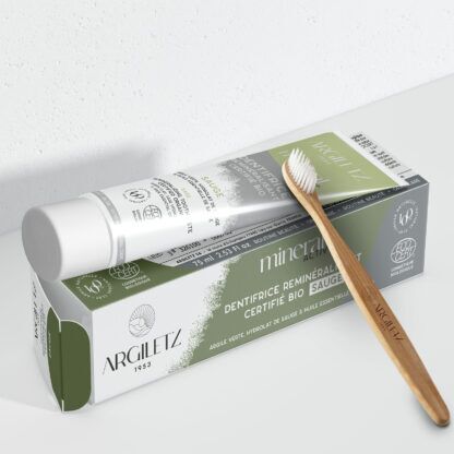 Une brosse à dents écologique en bambou à associer avec notre dentifrice sauge. Un dentifrice reminéralisant à base d’argile verte riche en oligo-éléments qui apportera en plus d’une sensation de douceur, force intense à vos gencives. Le duo parfait pour une bouche plus saine.